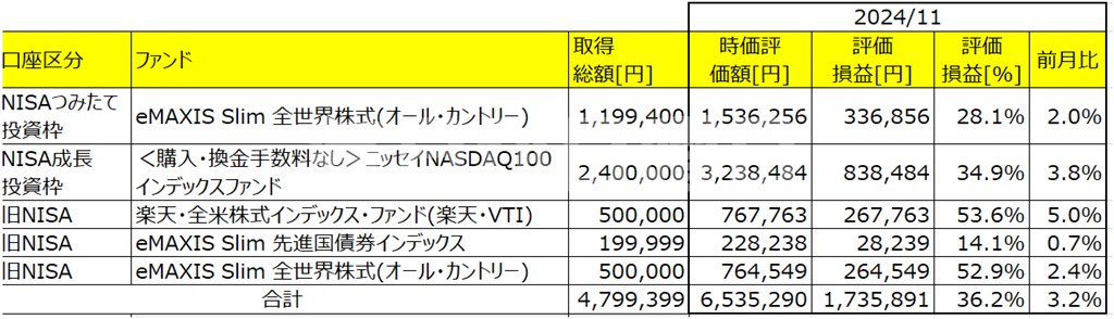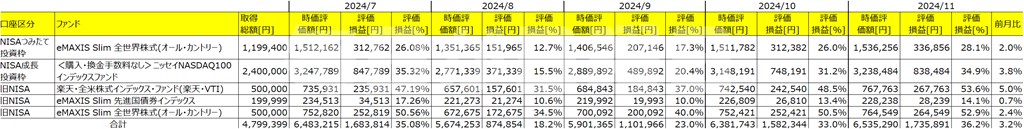 みんな上がってますね。全体で評価損益36%は、8月の暴落前に戻った感じです。